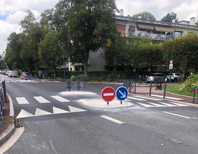 - Optimisation du partage de l’espace public et sécurisation de la rue de Versailles : une meilleure identification au sol des zones de partage, ainsi que la pose de panneaux de signalisation le long de la piste cyclable. Le renforcement de la sécurité a également été travaillé avec l’installation de coussins berlinois, dont les ajustements seront prochainement réalisés par le Département.