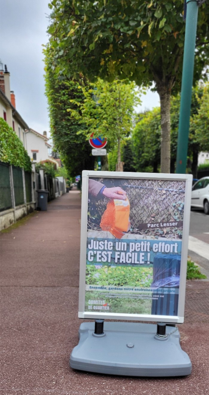 Cette initiative complète deux campagnes de communication sur les déjections canines, les dépôts sauvages et les mégots de cigarettes, diffusées sous forme de panneaux « stop-trottoirs ».